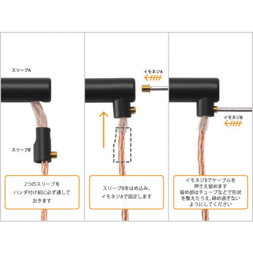 カシメ形状にも拘り、リケーブルの不安要素である「断線対策」にも配慮。